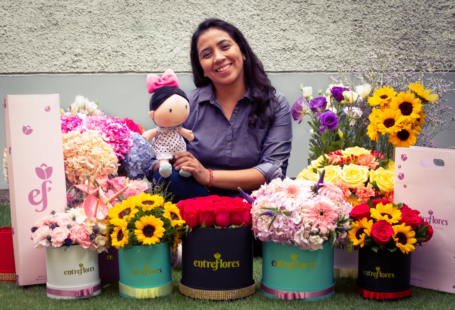 Nuestro nombre “Entre Flores” nace de un momento espontáneo, gracias a la visita de Ángela, amiga que me visitó en una de mis clases de arreglos florales, con Eduardo Privat. Nos tomamos un selfie y al publicarla en el Facebook escribió… «con Sandra, Entre Flores». Dos palabras que marcaron el inicio de este hermoso proyecto familiar.