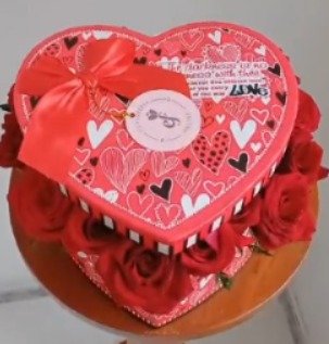 Box corazón con hermosas rosas y deliciosos bombones.