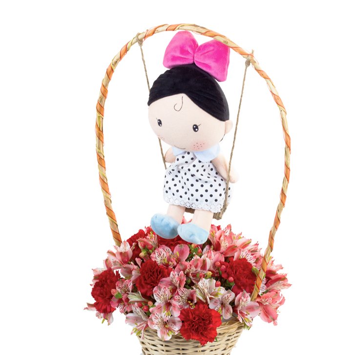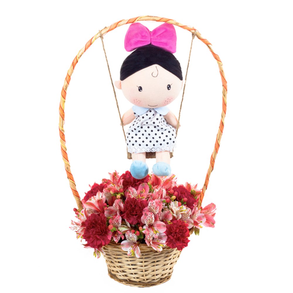Claveles importados Impericum Astromelias y muñeca Sása.